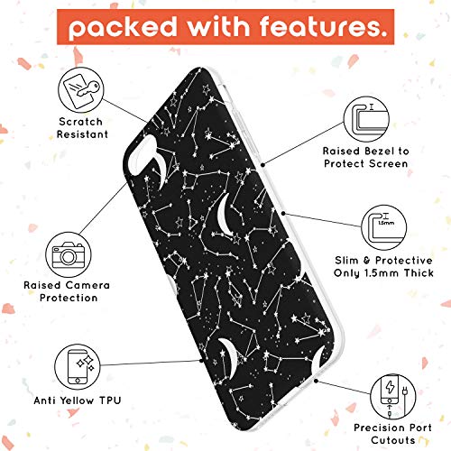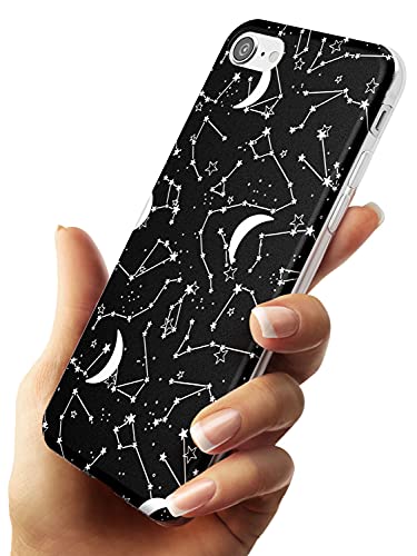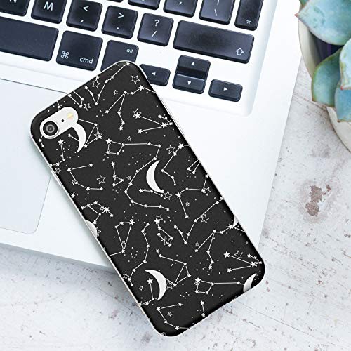 Custodia sottile per iPhone 7/8/SE in TPU con costellazioni bianche su sfondo nero con luce protettiva e spazio galassia stelle universo luna