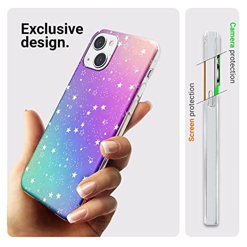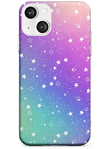 Custodia sottile in TPU per iPhone 13 Mini con stelle bianche su pastelli e stelle e luna, con spazio galassia e luna universo