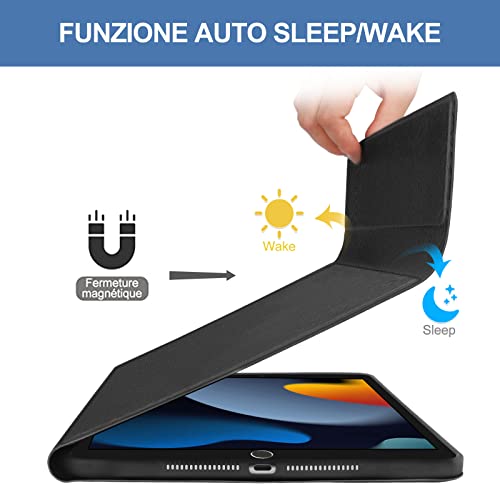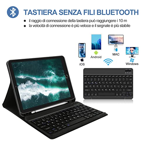 Custodia con Tastiera per iPad 10.2, Tastiera per iPad 9a/8a/7a Generazione 2021/2020/2019/iPad Air 3/iPad Pro 10.5, Layout QWERTY Italiano Tastiera Bluetooth Staccabile per iPad 10.2/10.5, Nero