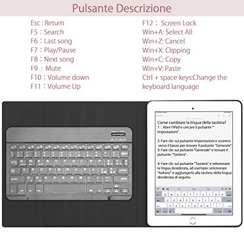 Custodia Tastiera Italiano per iPad 10.2, SENGBIRCH Custodia con Bluetooth Tastiera per iPad 10.2 2021(9a Generazione)/iPad Air 3/iPad PRO 10.5,con Magnetica Smart Auto Wake/Sleep Cover - Oro Rosa