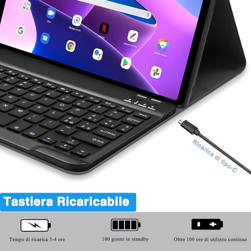Grande durata della batteria: Tastiera per Lenovo Tab M10 Plus (3a Generazione) 10.6" può funzionare ininterrottamente per 100 ore o standby per 100 giorni con una carica completa. (Nota: Si prega di caricare la tastiera Bluetooth per circa 2-3 ore prima di usarlo per la prima volta).