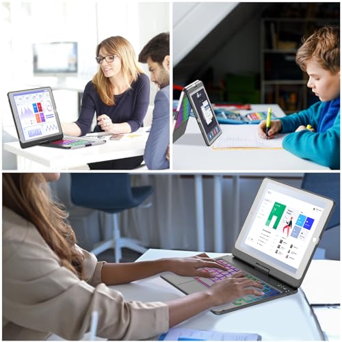 【Rotazione a 360 gradi】La custodia per ipad di 9a generazione con tastiera con cerniera a rotazione libera a 360° offre la massima libertà di utilizzo, offrendo un angolo di visione infinito. È inoltre possibile inclinare facilmente la custodia per tastiera per ipad 9e/8e/7e da 0 a 360 gradi, consentendo di regolare liberamente l'angolo di inclinazione e di utilizzarla in più posizioni. Allo stesso tempo, la tastiera retroilluminata per ipad di 9a generazione è dotata di uno speciale supporto per stilo compatibile con lo stilo per ipad Apple, per un design più compatto.