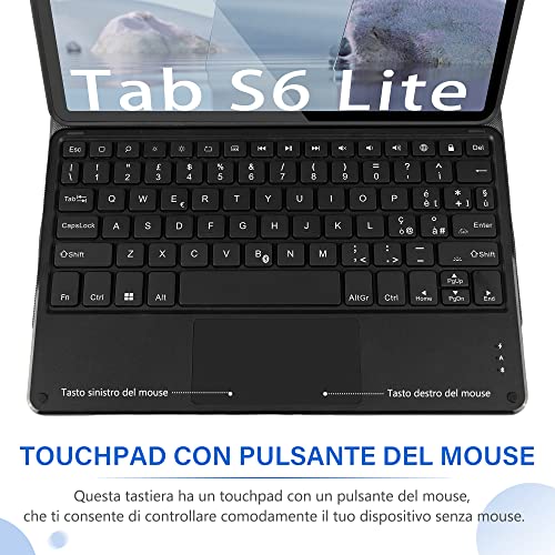 Custodia con Tastiera Touchpad per Samsung Galaxy Tab S6 Lite 10.4" 2020, Tastiera Italiano QWERTY, Trackpad, Rimovibile, Retroilluminazione a 7 Colori, Cover compatibile Samsung SM-P610/P615, Nero