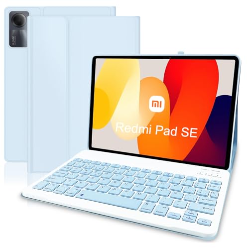 Custodia con Tastiera per Xiaomi Redmi Pad SE, Italiana QWERTY Layout Tastiera Redmi Tablet SE 11', Magnetica Staccabile Wireless, Blu SE11
