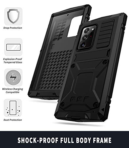 Custodia per telefono con supporto per Samsung Galaxy Note 20 Ultra 5G impermeabile con protezione per schermo in vetro metallo robusto + protezione totale in silicone antiurto 6,9 pollici nero