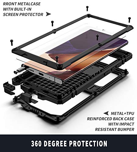 Protezione completa a 360: questa custodia standard militare per Samsung Galaxy Note 20 ultra realizzata in lega di alluminio di alta qualità + gel di silicone, anti-goccia, anti-caduta, protezione dagli urti e corpo tutto incluso protegge il tuo amato telefono cellulare tutto il tempo, soprattutto per attività all'aperto, ciclismo, arrampicata, passeggiate, con una cinghia per telefono facile da trasportare.