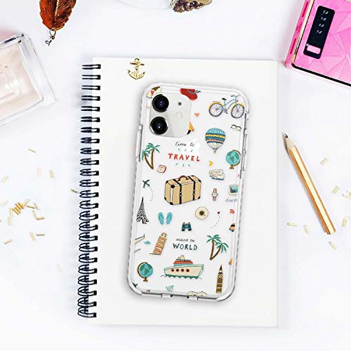 Custodia per telefono trasparente con motivo da viaggio carino per iPhone 11 TPU luce protettiva forte cover con cartone animato festivo alla moda esplorare avventura