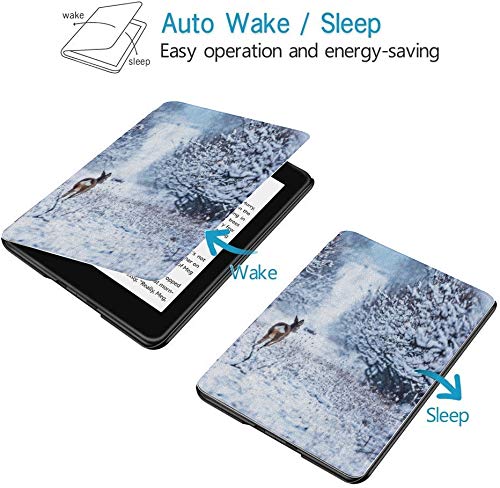 Custodia in tessuto Kindle Paperwhite completamente impermeabile (decima generazione, versione 2018), custodia per tablet capriolo capriolo invernale Roe Deer