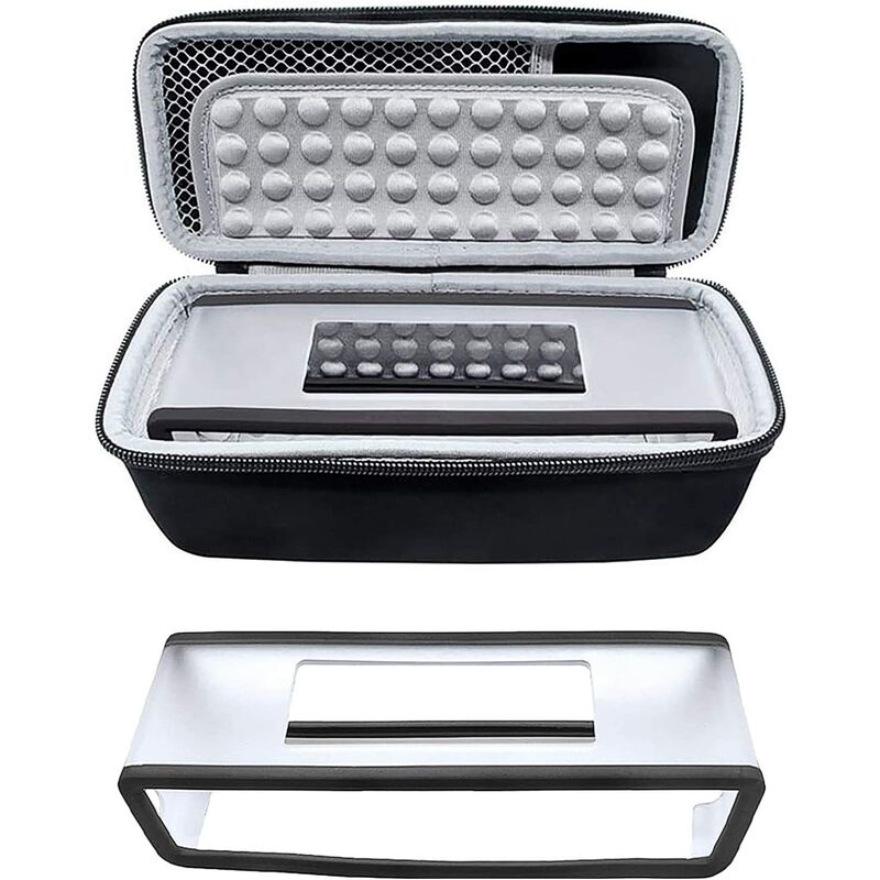 Progettato per l'altoparlante Bluetooth wireless portatile Soundlink Mini/Mini 2. Tasca a rete: la tasca a rete elastica nella parte superiore della custodia è il luogo perfetto per riporre l'alimentatore e il cavo dell'altoparlante.< /p> L'aletta ribaltabile extra imbottita protegge il tuo Mini dal caricabatterie in alto e un morbido cuscino nella parte inferiore per fornire una buona protezione. Cinghia da polso: con l'altoparlante e gli accessori all'interno la custodia, il cinturino da polso ti offre maggiore praticità e sicurezza. Doppia cerniera, liscia ma resistente a 360 ° per inserire ed estrarre facilmente l'altoparlante, il cinturino da polso e il moschettone in metallo. Super comodo da trasportare come arrampicata, campeggio, escursionismo, viaggi. Descrizione del prodotto Materiali di alta qualità, protezione completa Il guscio rigido impermeabile in EVA è ampiamente protetto da umidità, urti e vibrazioni. Il rivestimento interno morbido e di alta qualità riflette il