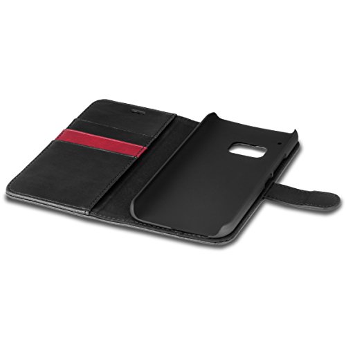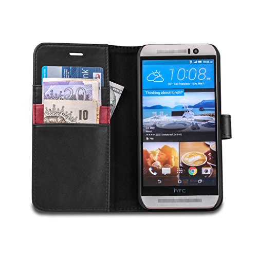 Custodia HTC M9, TUCCH Custodia in Pelle, in Piedi la Vista Diario Custodia Copertura di Vibrazione Portafoglio Flip Cover con Porta Carte, Chiusura Magnetica per HTC One M9 - Nero / Rosso