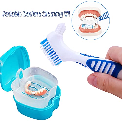 Custodia per vasca da bagno con spazzola per la pulizia delle protesi 2 pezzi per protesi da bagno con contenitore per tazze con cestello 2 spazzolini da denti per dentiere per la pulizia dei denti