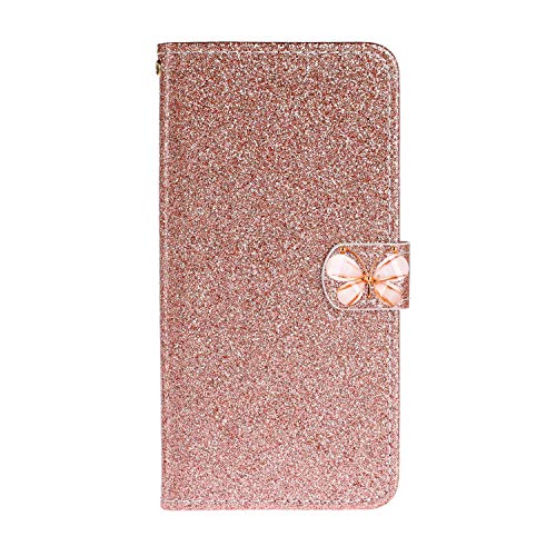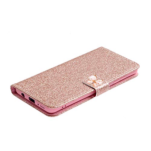 Custodia Xiaomi Mi 10 5G Glitter Brillantini PU Libro Cristallo Strass Cover Oro rosa Custodia Morbido Case Libro Leather Magnetico Flip Protettiva Portafoglio ID Slot Cover per Xiaomi Mi 10 5G