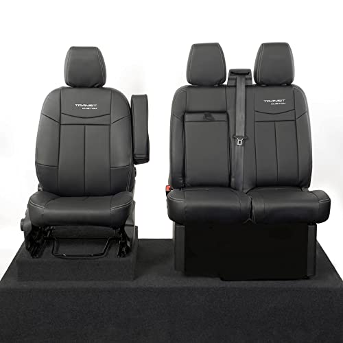 UK Custom Covers SC601B Coprisedili anteriori in similpelle su misura (singolomatrimoniale con vassoio estraibile) con punto a tinta unita e ricamo Transit Custom, per Ford Transit Custom dal 2013