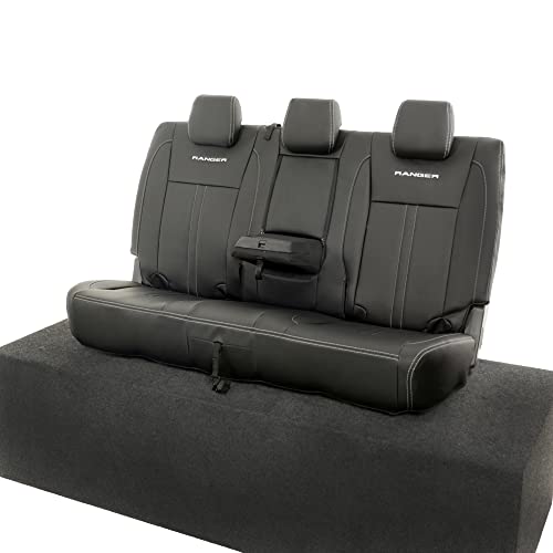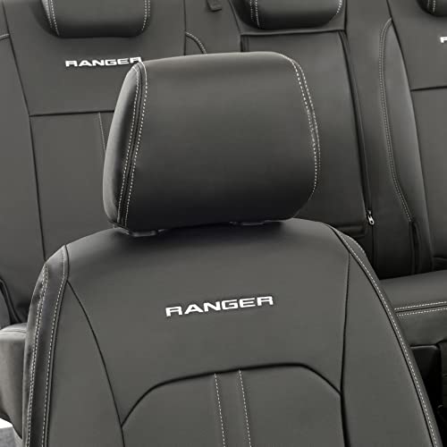 UK Custom Covers SC875B-876BAD4 - Coprisedili anteriori e posteriori in similpelle con punto a blocco e ricamo "Ranger" nero, adatti per Ford Ranger Limited (2012-2023)