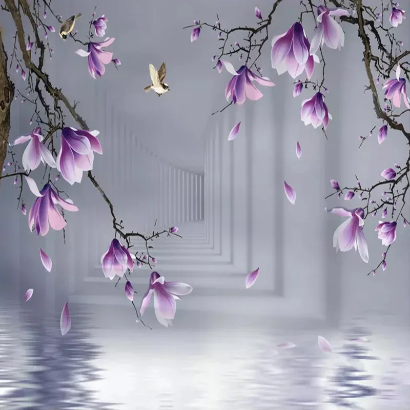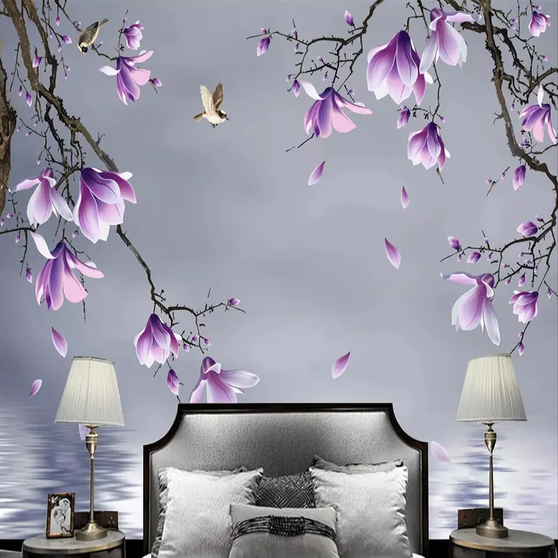 Custom Photo Wallpaper Modern 3D Magnolia Bird Flowers Space Murals Living Room TV Sofa Background Wall Paper For 3 D Home Decor