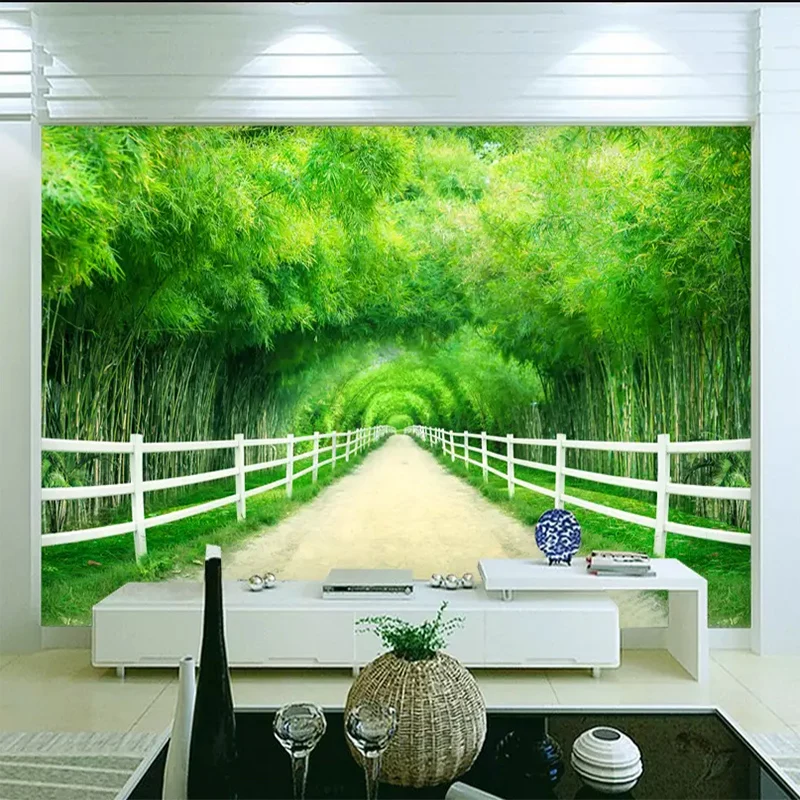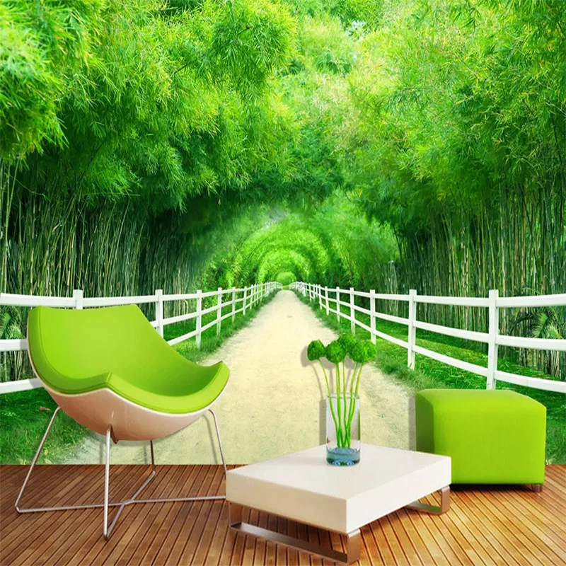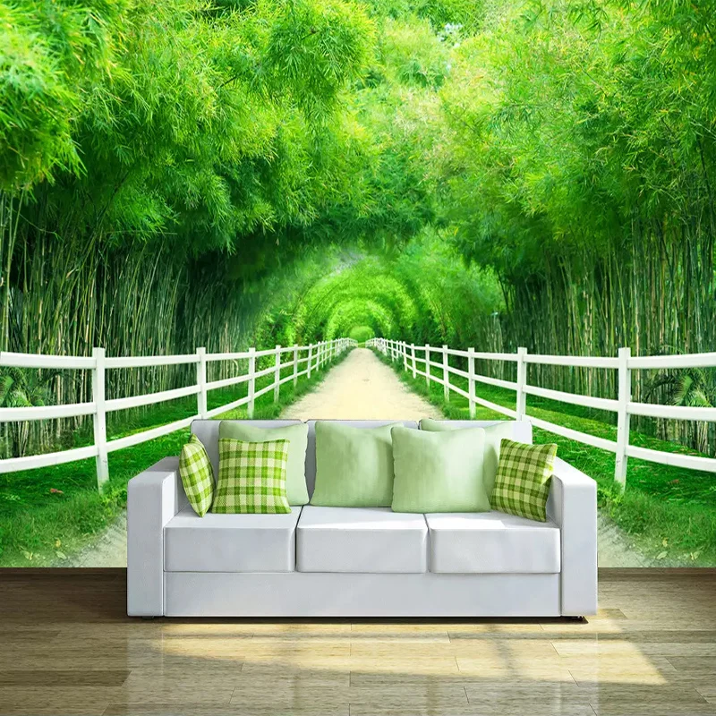 Custom 3D Photo Wallpaper Mural Bamboo Forest Fence Path Fresh Living Room Sofa Decoration Fresco Wall Cloth Papel De Parede 3D
