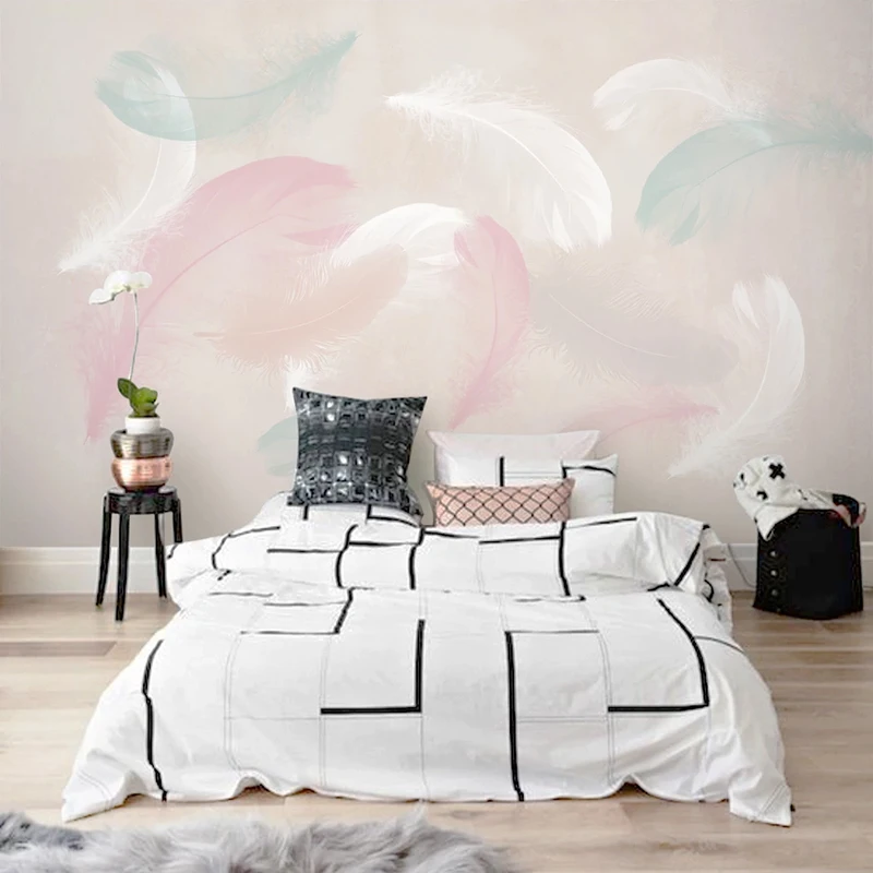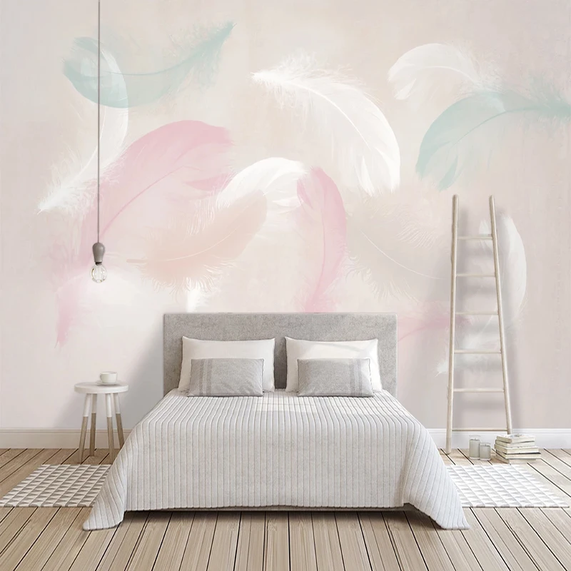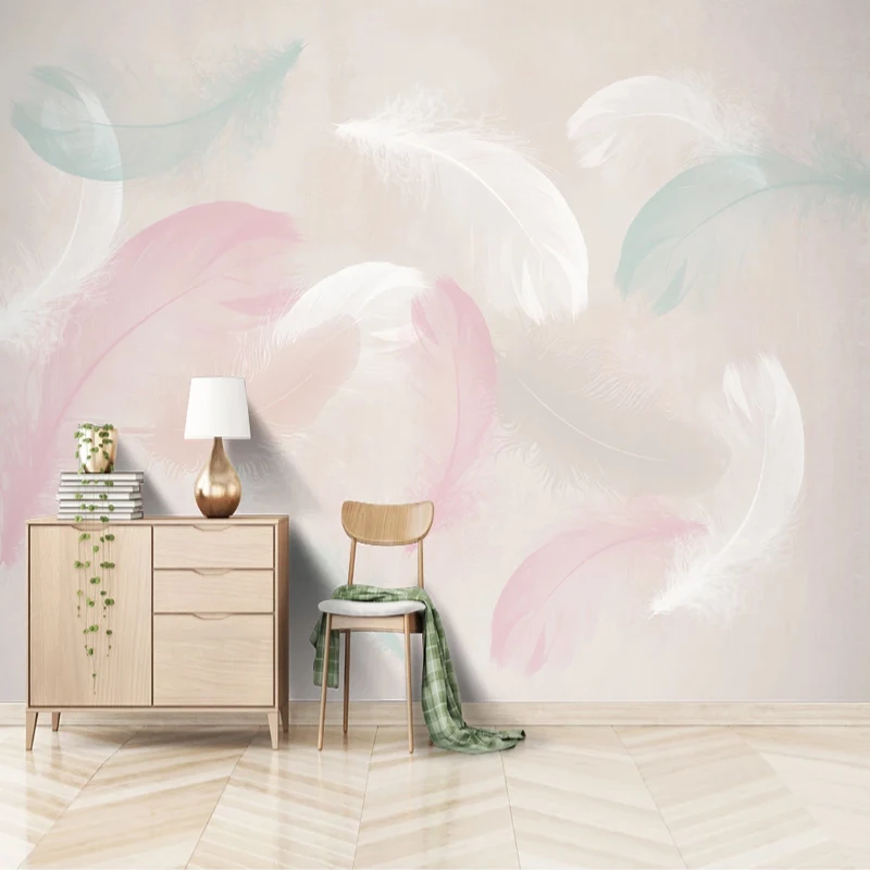 Custom Any Size Wall Cloth Nordic Feather Small Fresh Dreamy Murals Waterproof WallCloth Living Room Sofa Background Wall Paper