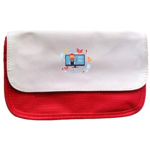 Astuccio porta penne #scuola-3# rosso, con pattina stampata con tecnica sublimatica indelebile e ad alta definizione.