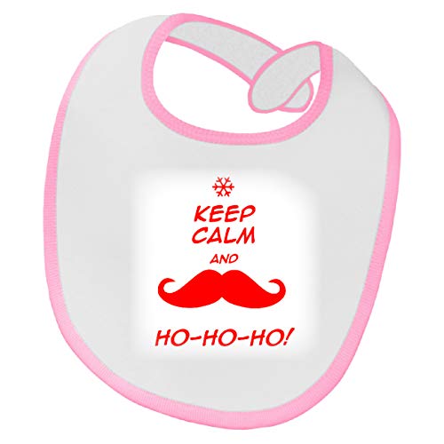 Bavaglino in cotone, modello #Natale - Keep Calm#, con sfondo bianco e bordo rosa. La bavetta, da cm25x30 e stampata con tecnica digitale diretta, per un risultato nitido e ad alta definizione. Ottima idea regalo.