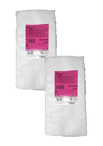 50 buste professionali goffrate 15x30 cm, per alimenti. Questi sacchetti sottovuoto, idonei per uso alimentare, sono realizzati da Orved per My Custom Style e ideali per essere utilizzati nelle principali macchine per sottovuoto.