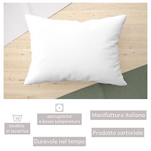 Imbottitura quadrata 45x75cm per federa cuscino. Tessuto esterno in TNT e interno in fibra di poliestere siliconata di alta qualità. Prodotto realizzato in Italia con lavoro artigianale sartoriale e scegliendo materie prime di elevata qualità. Le confezioni singole vengono spedite sottovuoto per preservarne l'igiene e per ottimizzare il trasporto.