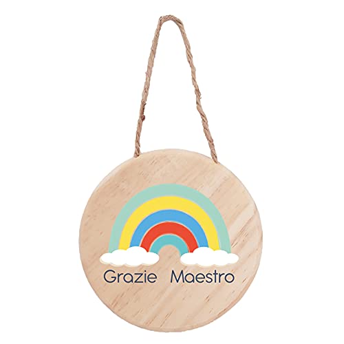 Targa targhetta tavoletta in legno #Scuola-arcobaleno# tonda da cm 13 di diametro, con laccetto in canapa. Disco targa decorativa ideale per cartelli in legno da appendere o come supporto per stampare testi o immagini e realizzare originali idee regalo per eventi, ricorrenze, o semplicemente come fuori porta.