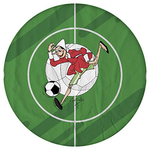 Telo mare tondo, modello "Pinocchio - Calcio", da 150cm di diametro, in cotone con lato stampabile in poliestere. L'asciugamano è personalizzato, con la grafica scelta, per un risultato bello e duraturo. Per chi desidera un prodotto in cotone, col suo spessore, sacrificando però l'eccezionale qualità di stampa della microfibra vellutata. La pelura del cotone infatti impedisce la nitidezza della stampa, tipica della microfibra.