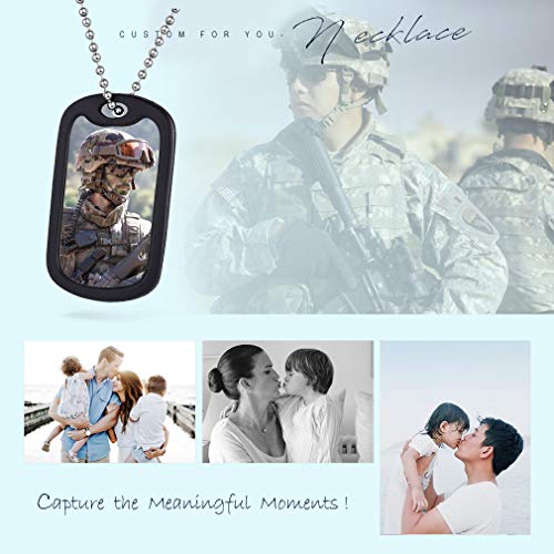 Custom4U Collana Uomo con Ciondolo Targhetta dell'Esercito Militare Foto/Testo Personalizzabile Ciondolo Targhetta in Acciaio Inox 316L con Catena a Sfera Senza Nichel Senza Piombo Anti-allergico