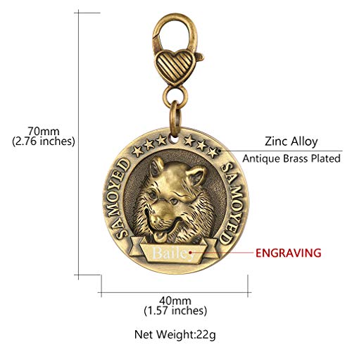Custom4U Targhette identificative Personalizzate per Cani con Effetto Razza 3D - Targhetta Personalizzata in Rame con Incisione Laser su Entrambi i Lati per Cani Samoiedo