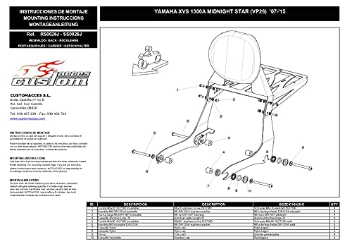 Customaccess Schienale Piatto Rimovibile per Yamaha Xvs1300A Midnight Star 07'-16', Cromo