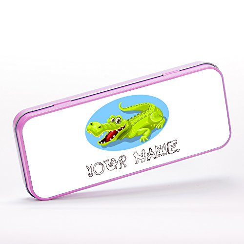 Customized Cute Crocodile Alligator Animal Children Kids Personalised Barattolo in metallo per cancelleria - rose