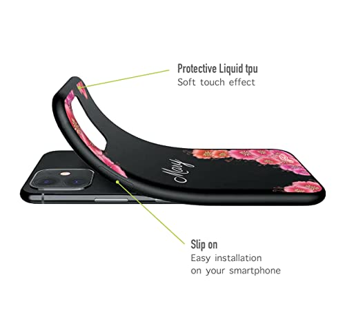 CUSTOMIZZA - Custodia cover nera morbida in tpu compatibile per Samsung A51 personalizzata con nome scritta iniziali a piacere fiori flower rosa fucsia regalo