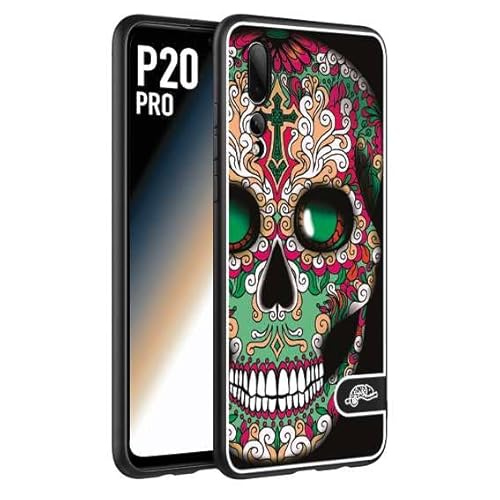 CUSTOMIZZA - Custodia cover nera morbida in tpu compatibile per Huawei P20 PRO teschio messicano Mexican skull verde fucsia