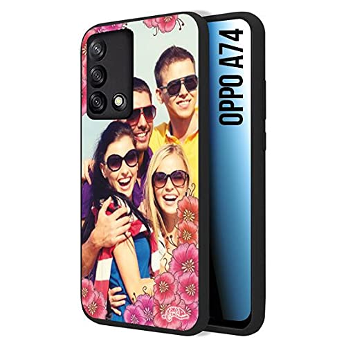 CUSTOMIZZA - Custodia cover nera morbida in tpu compatibile per Oppo A74 personalizzata con foto immagine scritta a piacere fiori flower rosa fucsia regalo