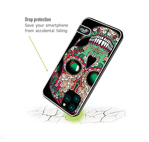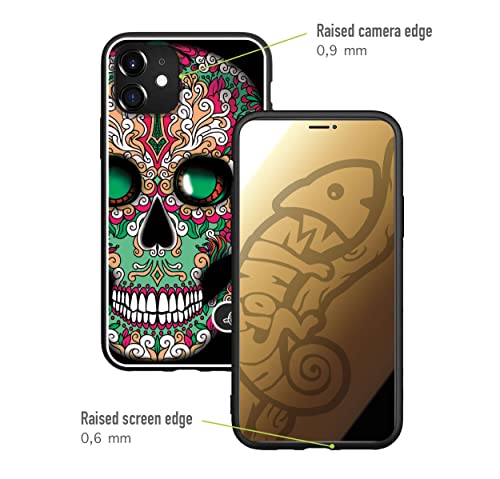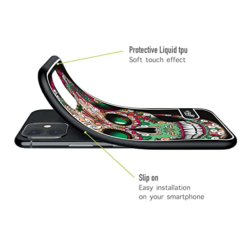 CUSTOMIZZA - Custodia cover nera morbida in tpu compatibile per iPhone 15 teschio messicano Mexican skull verde fucsia