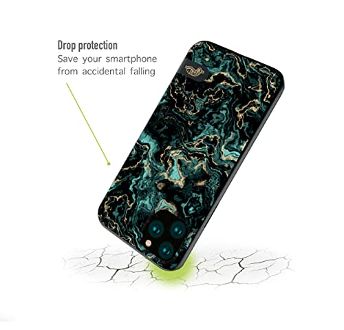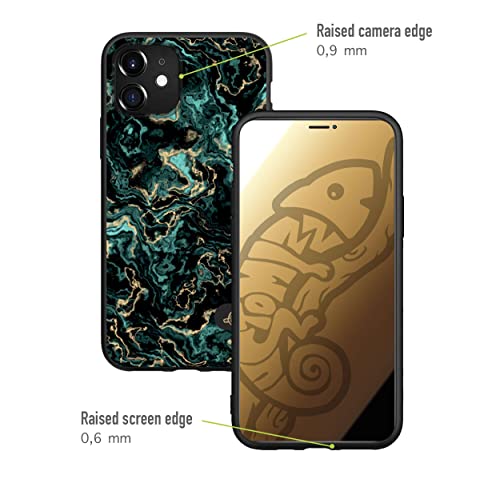 CUSTOMIZZA - Custodia cover nera morbida in tpu compatibile per iPhone 13 effetto marmo marble verde green venature dorato pietra