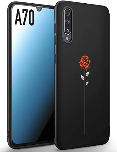 CUSTOMIZZA - Custodia cover nera morbida in tpu compatibile per Samsung A70 rosa rossa fiore flower red stilizzata donna femminile