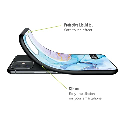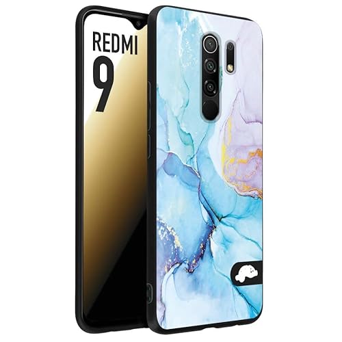 CUSTOMIZZA - Custodia cover nera morbida in tpu compatibile per Xiaomi Redmi 9 effetto marmo celeste marble effect venature blu