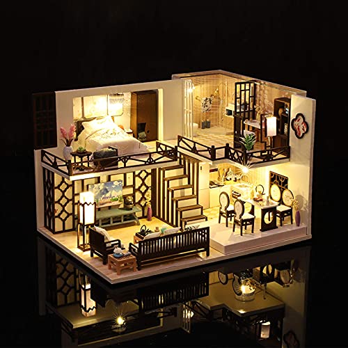 Cuteefun Miniature Casa delle Bambole con Musica e Mobili, Bricolage Creativo Adulti, Casa in Miniatura Fai da Te da Costruire, Regalo Compleanno per Le Donne, Bel Momento