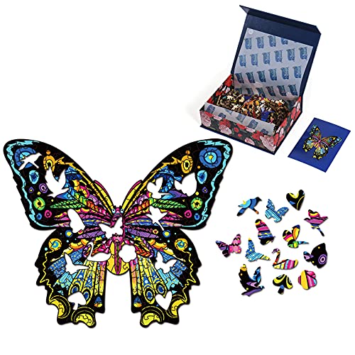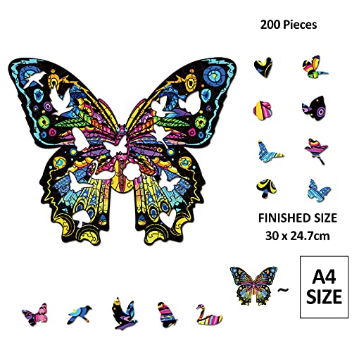 Cuteefun Puzzle in Legno per Adulti Puzzle Animale di Forma Unica Farfalla Puzzle da 200 Pezzi per Regalo Famiglia