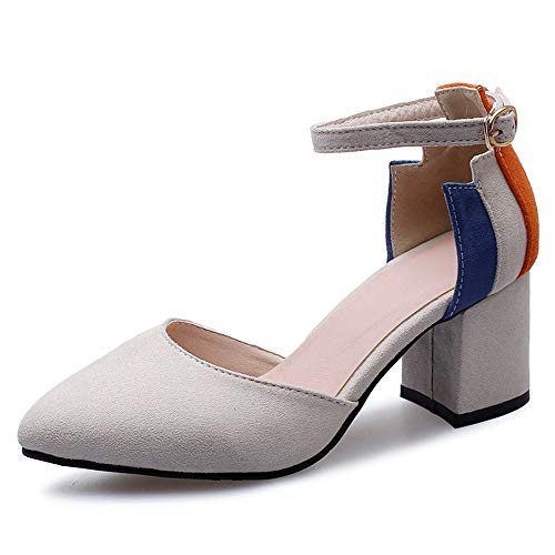 CuteFlats Sandali Eleganti con Cinturino alla Caviglia da Donna con Punta a Punta e Tacco Largo