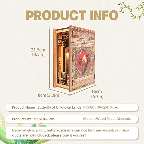 Design unico: Qualcuno ha detto: ciò che hai perso "tornerà" in un altro modo, questo BOOK NOOK KIT fonte di ispirazione del design: anima perduta, e questo si chiama: "L'anima perduta si trasforma in farfalla e rinasce e si libera. Questa è un'antica storia che ci dice principalmente che possiamo superare il bozzolo e diventare una farfalla affrontando le difficoltà.