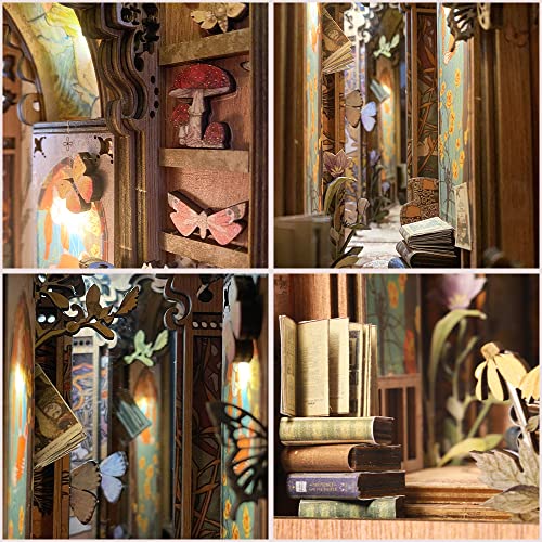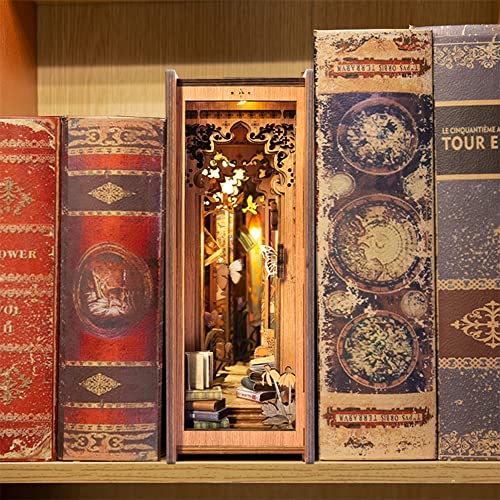 Cutefun DIY Case delle Bambole - Book Nook Model Kit,Reggilibri Scaffale Inserto Decorazione con Luce LED,Kit di Costruzione di Modellini in Legno per Casa delle Bambole Fai-da-Te(BK01)