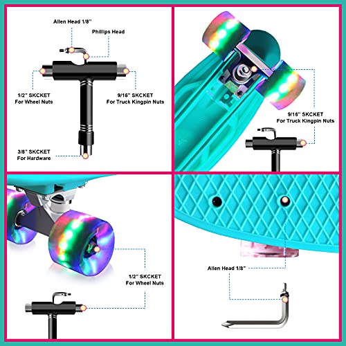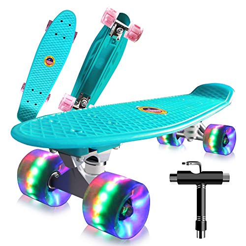 Cutemelo Skateboards 55cm Mini Cruiser Skateboard Completo retrò per Ragazzo, Ragazza, Giovani, Adulti, Principianti con Ruote LED Lampeggianti, con Strumento T (Menta verde)