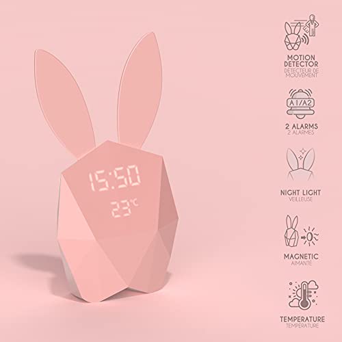DESIGN DIVERTENTE E ORIGINALE: questa sveglia intelligente coniglio improvvisa oggetto decorativo combinando design grafico e stile kawaii. Farà il suo nido ovunque in casa: dalla camera dei piccoli o grandi al soggiorno. Potrete magnetizzarlo ovunque grazie al magnete posteriore e a quelli forniti nella scatola.