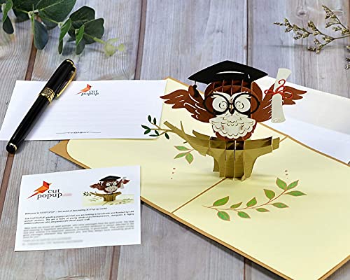 CUTPOPUP - Biglietto di compleanno pop-up con gufo di laurea per figlio adolescente - biglietto straordinario con design artistico