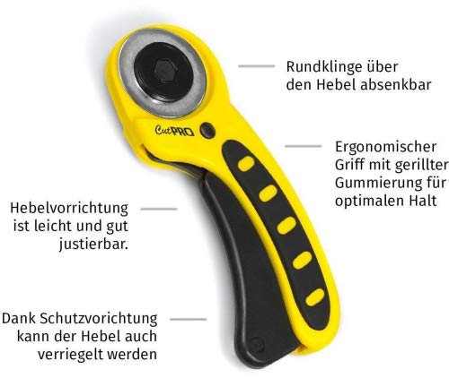 Alta qualità: la taglierina rotante/cutter per tessuti Cutpro è realizzata in plastica di alta qualità con lama in acciaio inox.