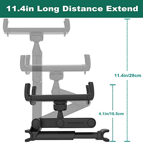 Braccio lungo e girevole a 360°: il supporto per tablet per poggiatesta auto ha una connessione a sfera girevole a 360° + meccanismo di inclinazione estensibile a lunga distanza da 29,5 cm, è ideale sia per verticale che per paesaggio, la rotazione multi-angolo consente una varietà di diverse regolazioni di posizione per ottenere il miglior angolo di visione che si desidera, mantenere i vostri bambini o altri passeggeri del sedile posteriore intrattenuti su lunghi viaggi, guidare in pace. Braccio forte e flessibile, facile da usare.