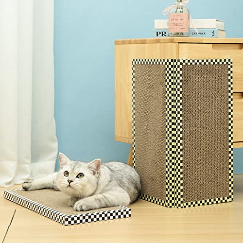 Cuyacili Tiragraffi per Gatti Cartone Tiragraffi ad angolo vertical Scratcher Reversibile Cartone Corrugare Resistente all'usura Giocattolo per gatti Proteggere i mobile 43x20cm