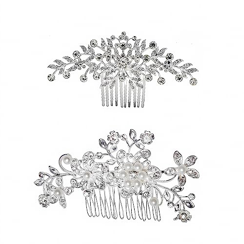 2 Stili: il set comprende 2 pettini per capelli da sposa, realizzati in cristallo e perle sintetiche, con disegni floreali, che rendono la sposa elegante e bella.